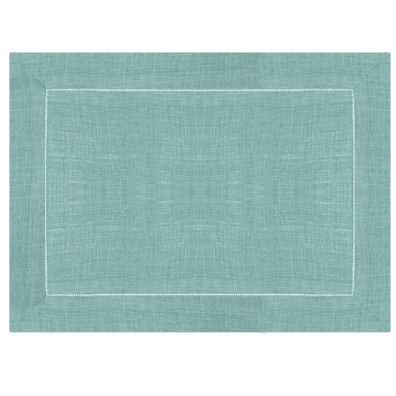 Mantel individual en lino puro lituano con dobladillo ancho de vainicas dobles, medida aproximada 35 x 50 cm