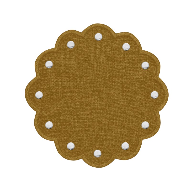 Plato de pan en lino puro lituano con bodoques bordados. La medida aproximada es de 10 cm
