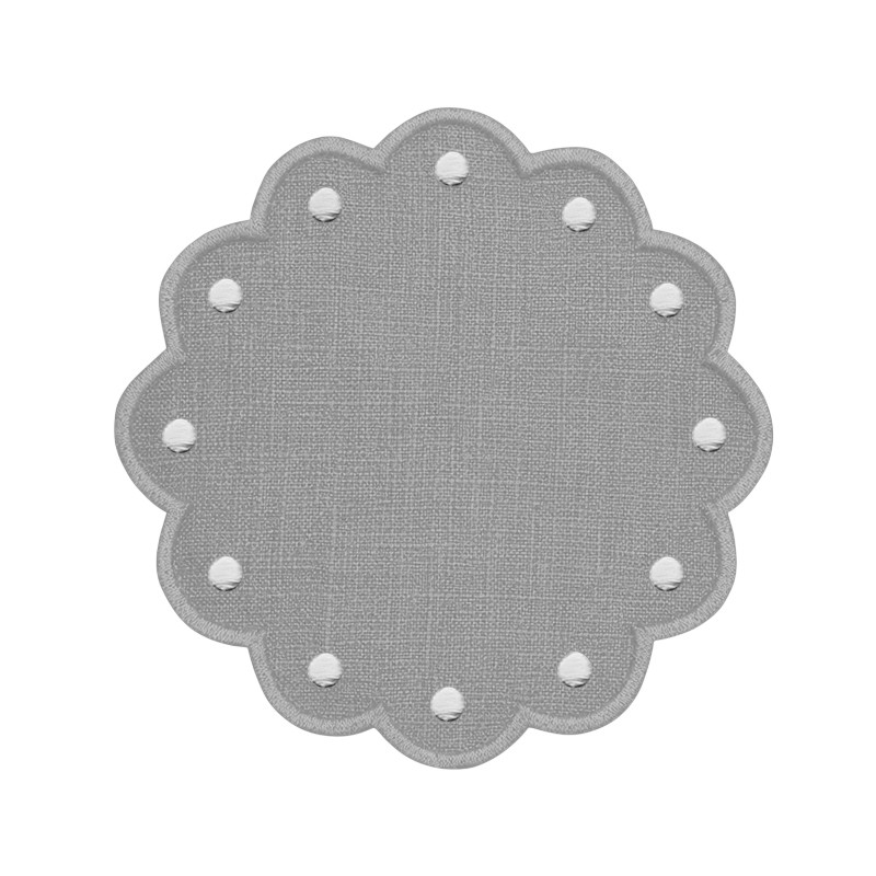Plato de pan en lino puro lituano con bodoques bordados. La medida aproximada es de 10 cm.