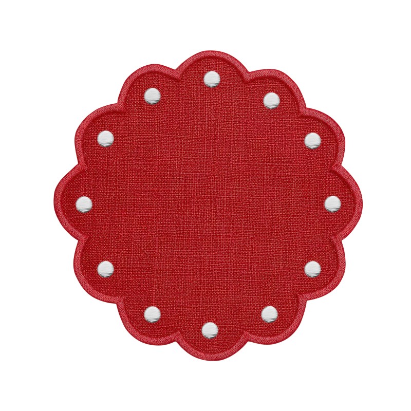 Plato de pan en lino puro lituano con bodoques bordados. La medida aproximada es de 10 cm