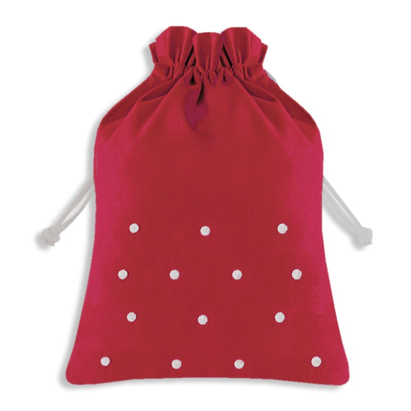 Bolsa de aseo en en 60% lino 20% viscosa con bodoques bordados a mano. Disponible en tres tamaños.